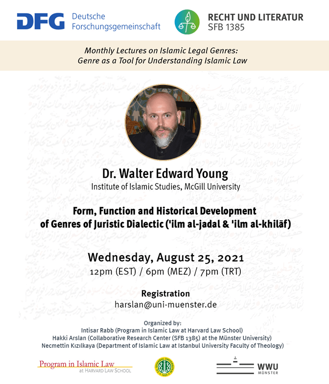 The presentation is part of a monthly lecture series organized by the Project “Canonization and Diversification in Islamic Law and in Arabian Rhetoric in Comparison” situated in the collaborative Research Centre (SFB 1385) at the Münster University, in cooperation with Program in Islamic Law at Harvard Law School and the Faculty of Theology at Istanbul University.
